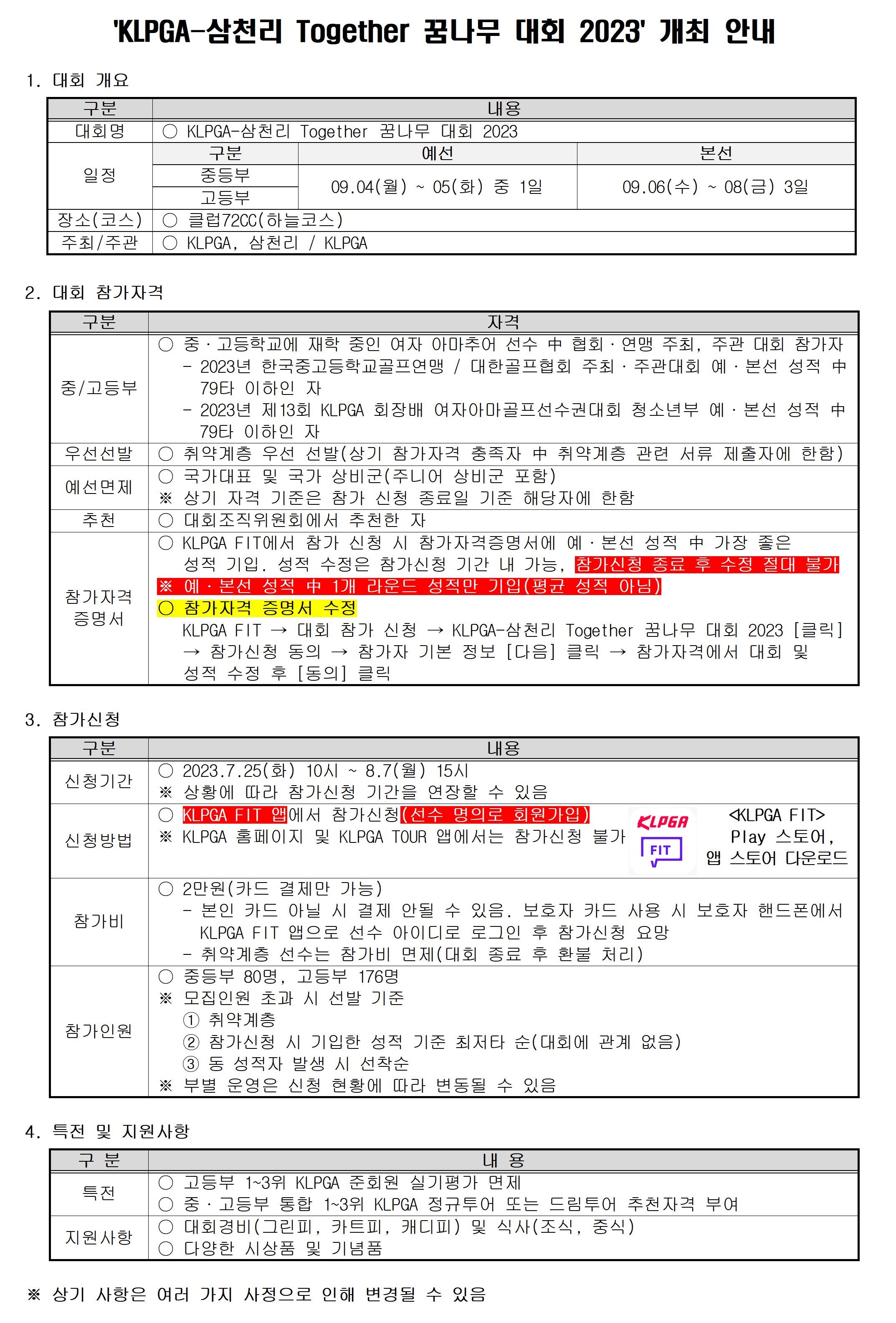 2023 KLPGA 회원맞춤형 교육프로그램 시행(3분기 / 07월 ~ 09월) 안내