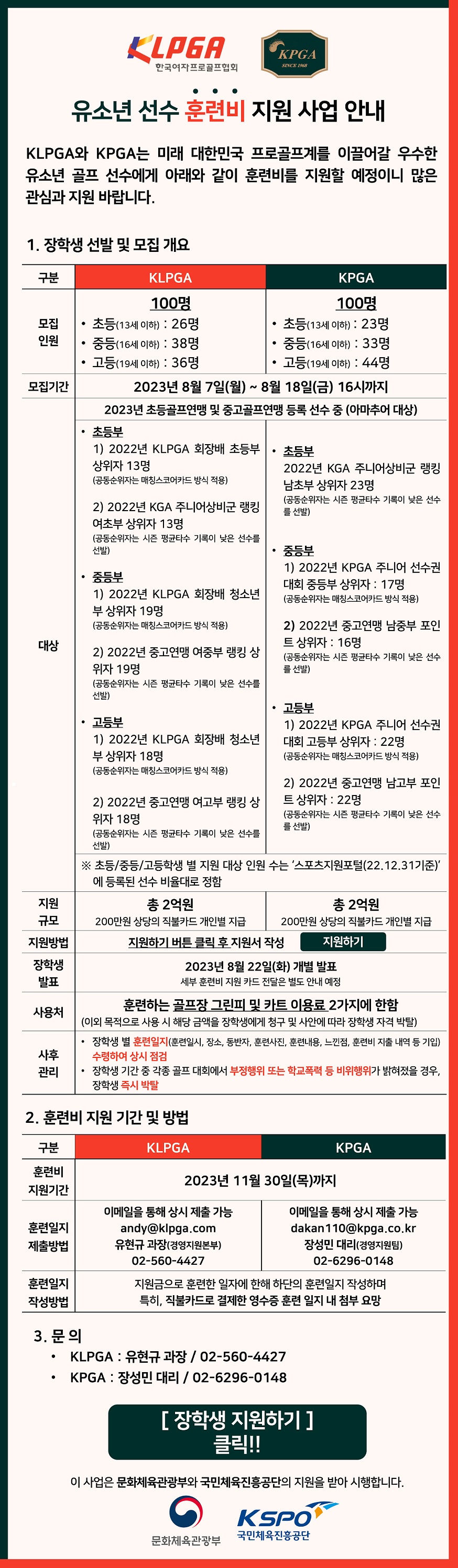KLPGA 유소년 선수 훈련비 지원 사업 신청자 모집 안내