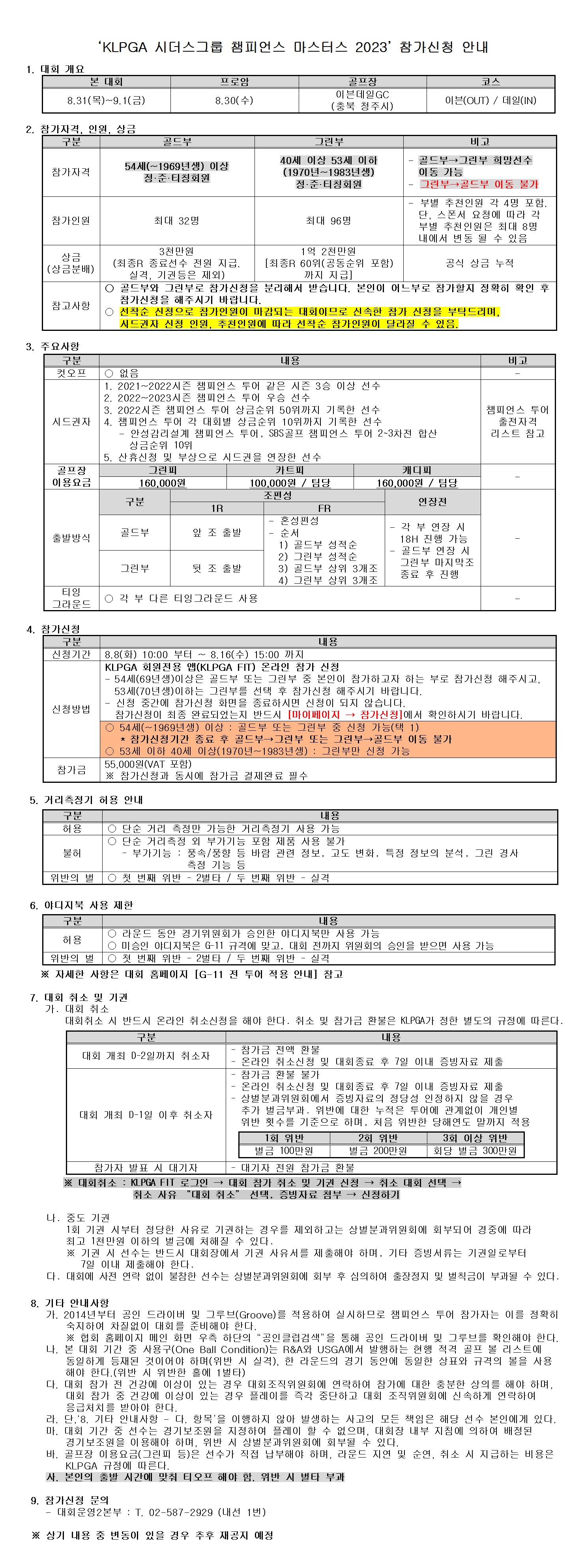 'KLPGA 시더스그룹 챔피언스 마스터스 2023' 참가신청 안내