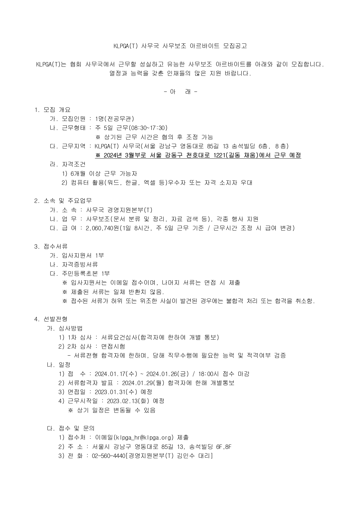 별첨. KLPGT 사무국 사무보조 아르바이트 입사지원서.hwp