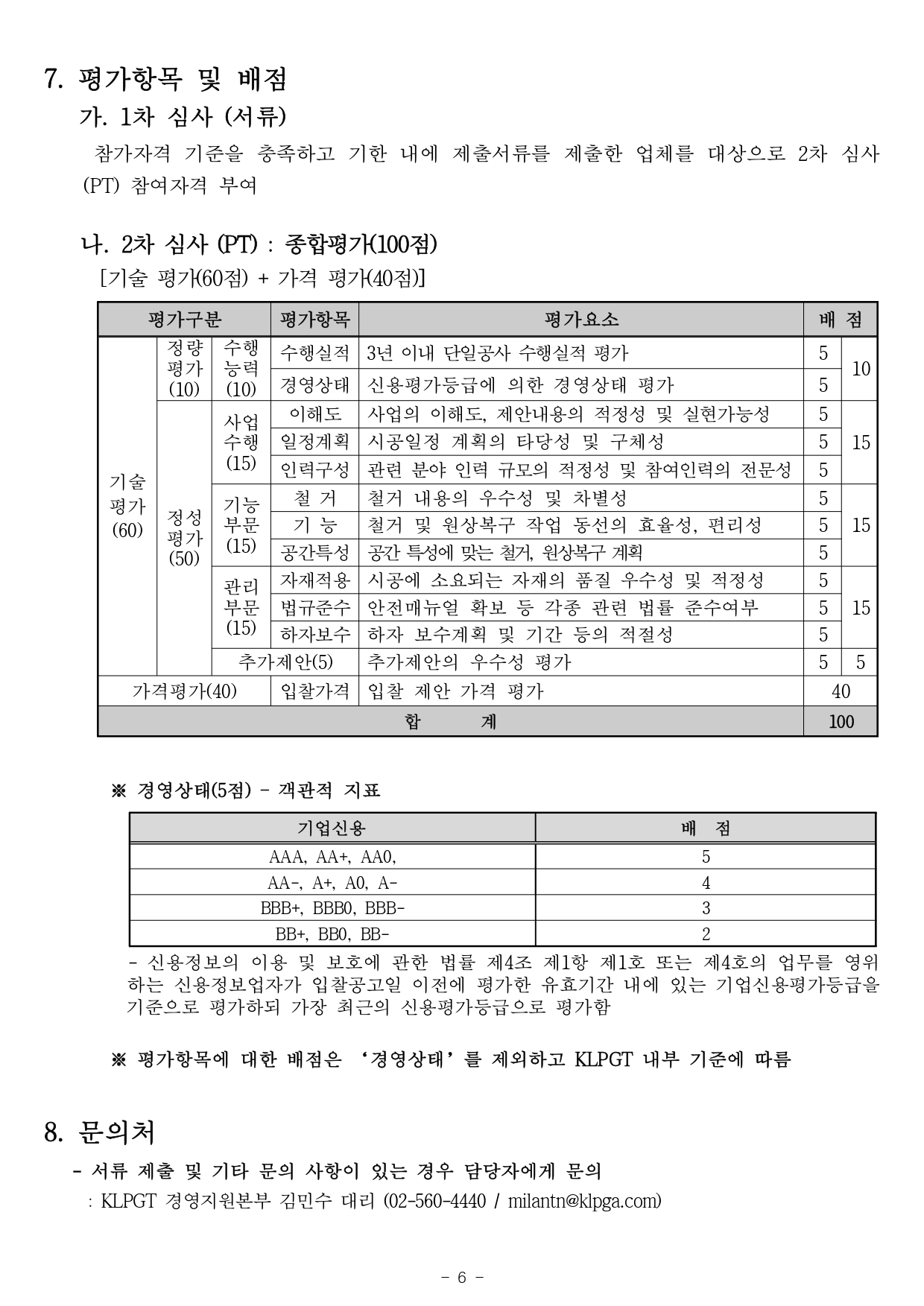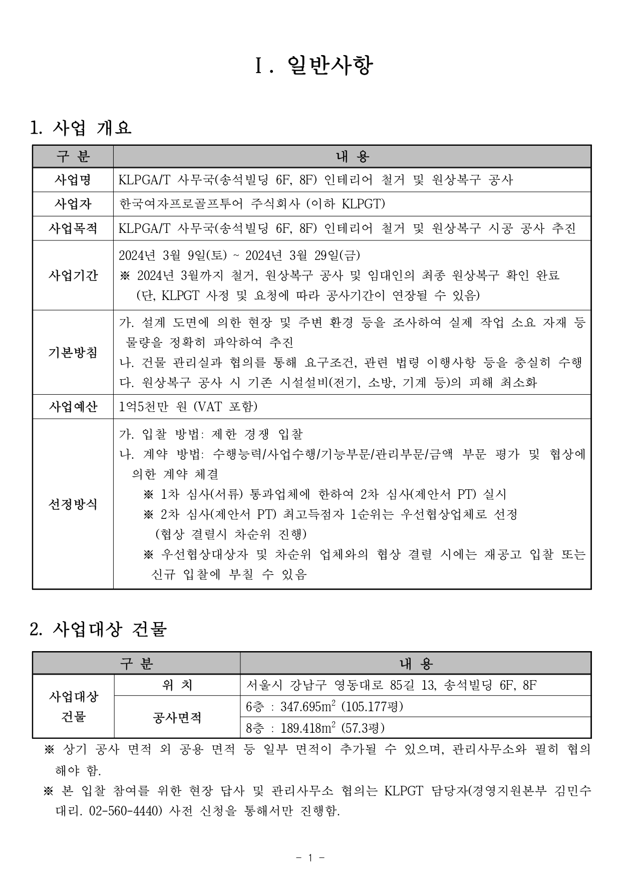 KLPGT 송석빌딩 6F, 8F 원상복구공사 제안요청서 & 별지서식(최종).hwp