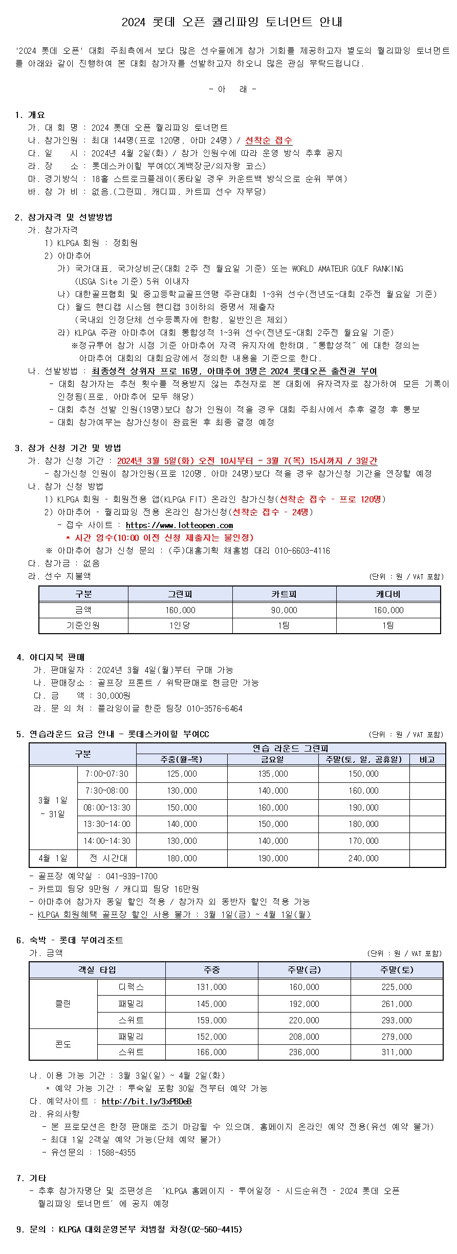 2024년도 KLPGA 유소년 지원사업 "Kidz 골프캠프" 위탁업체 입찰 공고