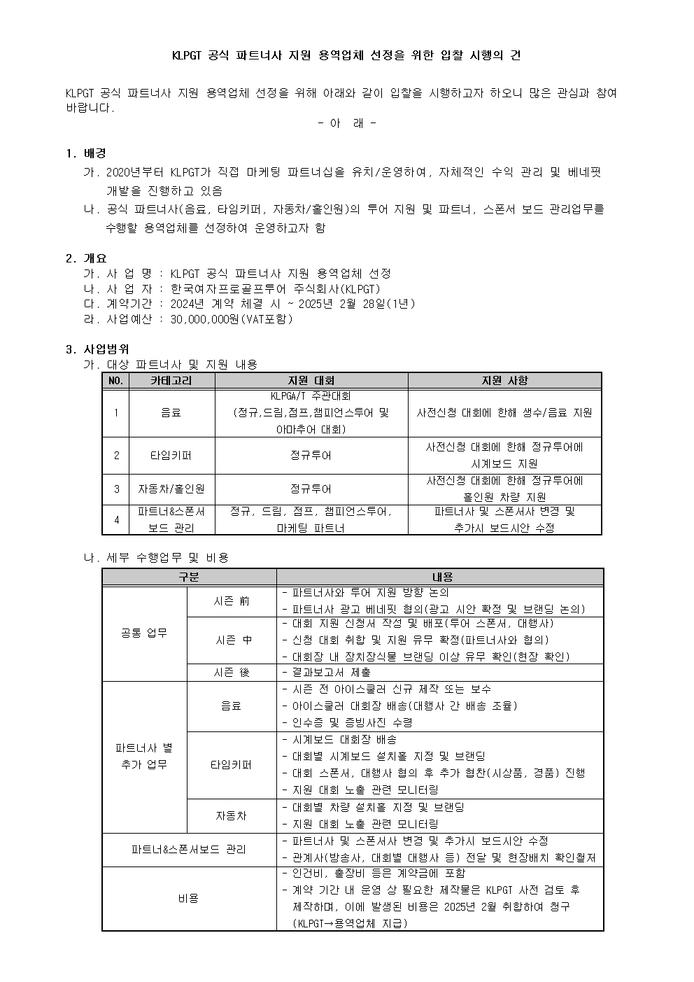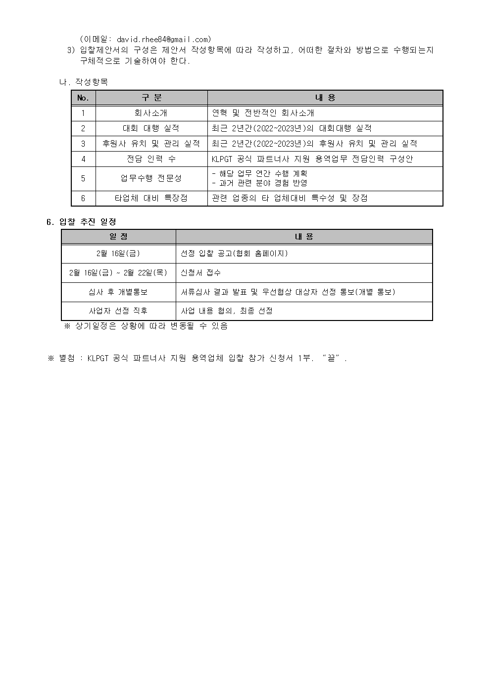 별첨. KLPGT 공식 파트너사 지원 용역업체 입찰 참가 신청서.hwp