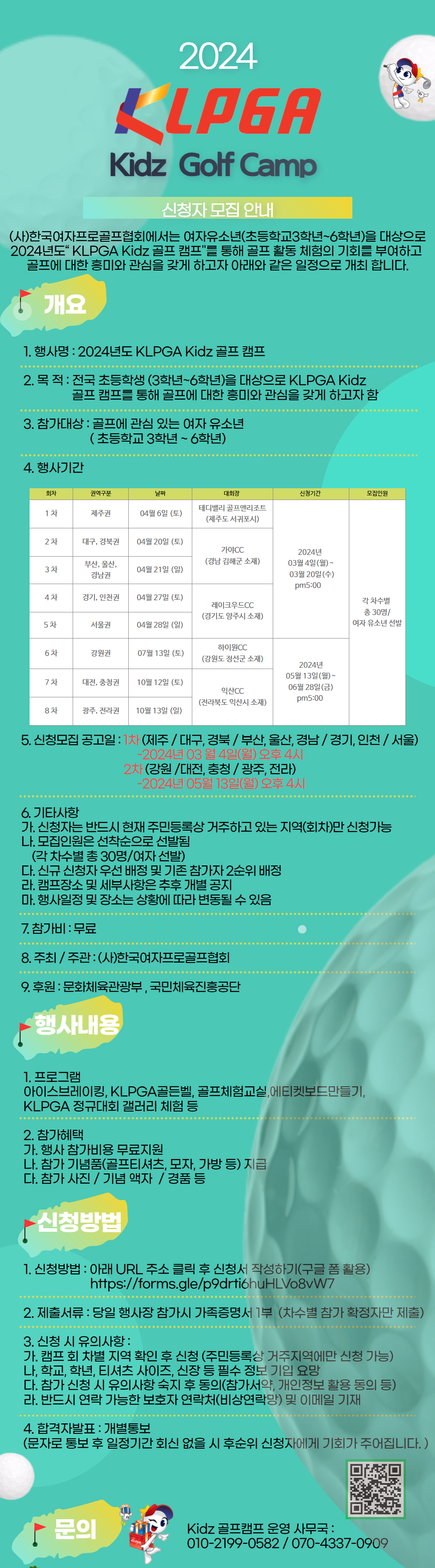 2024 KLPGA Kidz 골프 캠프 신청자 모집 안내