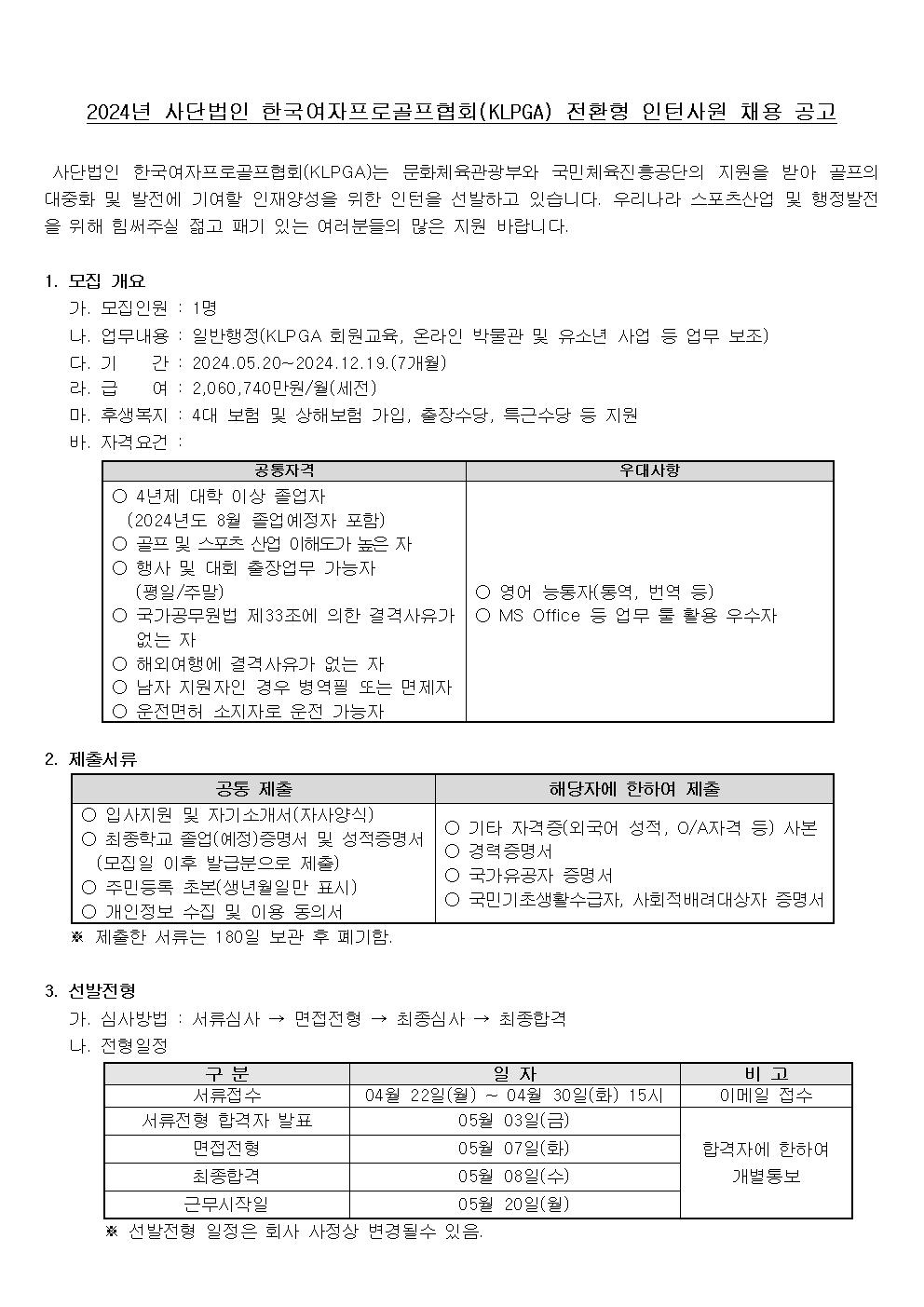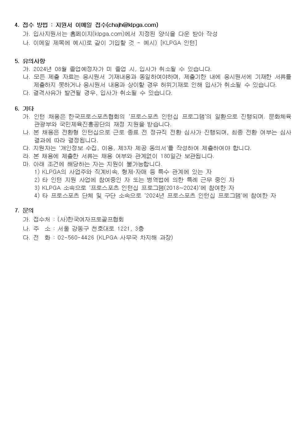 2. 2024년도 KLPGA 사무국 전환형 인턴사원 입사지원서 .hwp