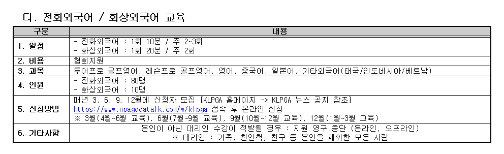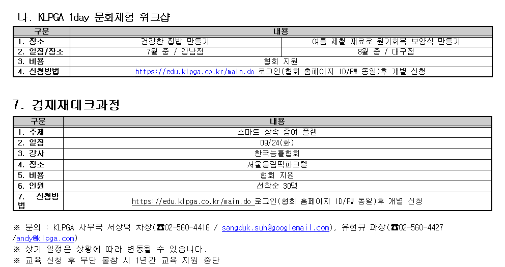 2024 KLPGA 회원맞춤형 교육프로그램 시행(3분기 / 7월 ~9월) 안내