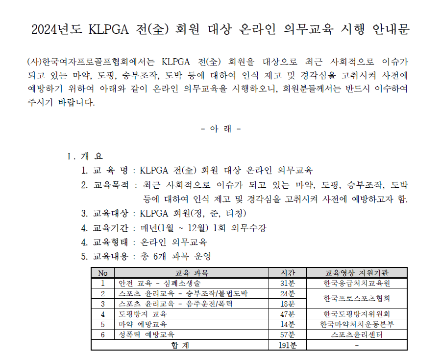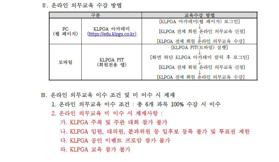 KLPGA-롯데백화점 문화센터 회원교육 가을학기 수강신청 안내
