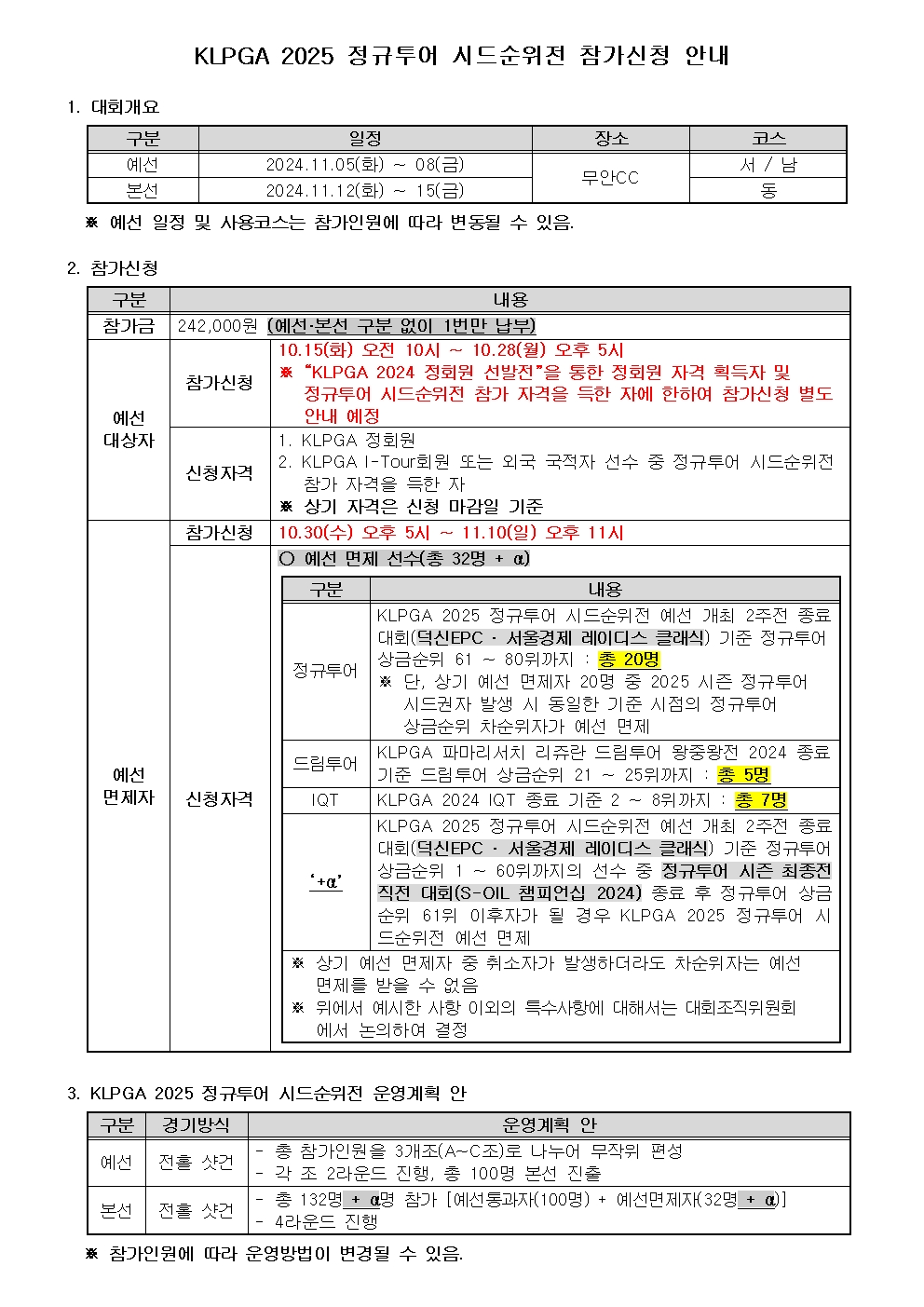 2024년도 KLPGA 제2차 신입 준회원 입문교육 안내