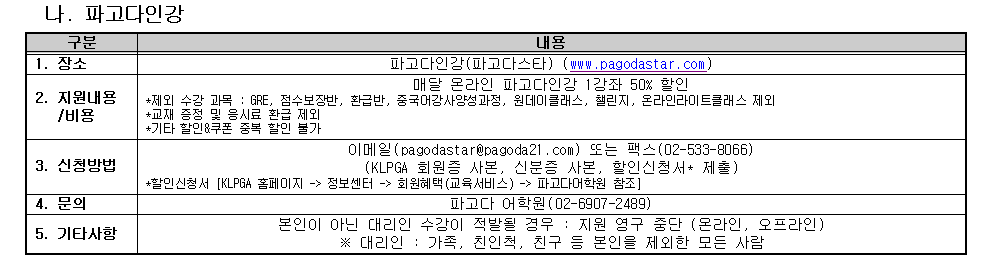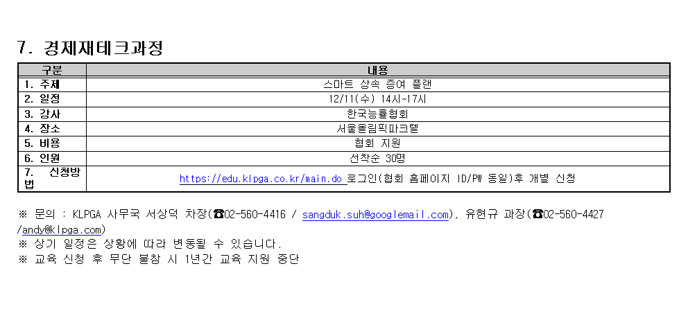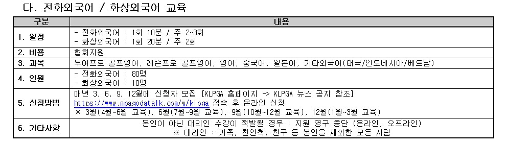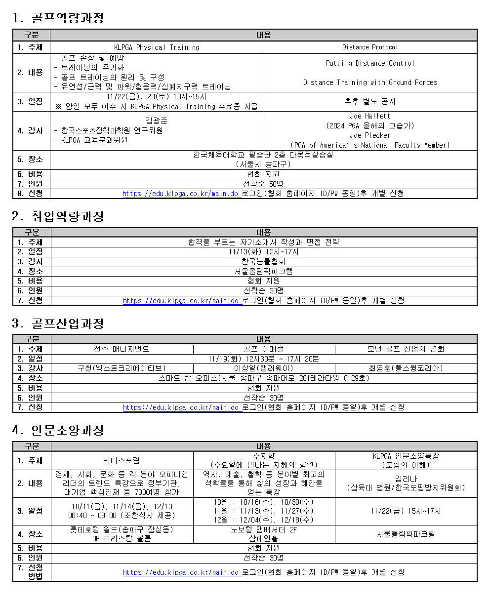 2024 KLPGA 회원맞춤형 교육프로그램 시행(4분기 /10월 ~12월) 안내