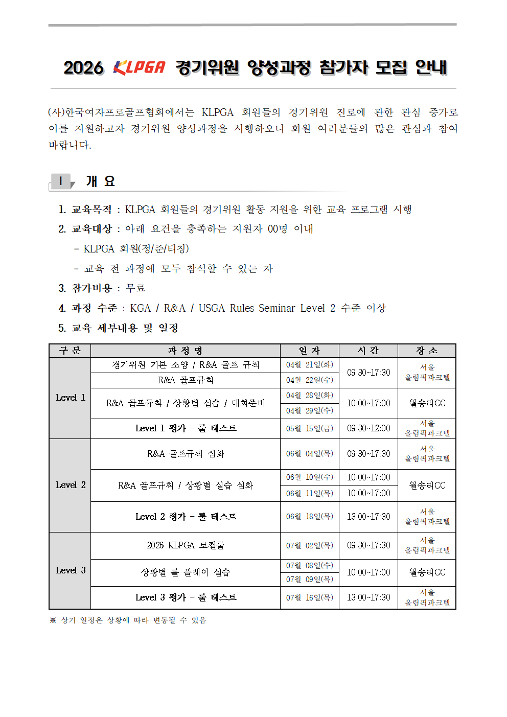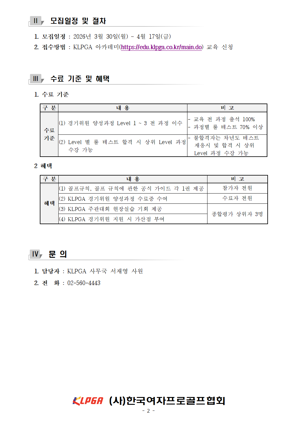 2026년도 04월 ~ 06월 KLPGA 회원맞춤형교육 안내