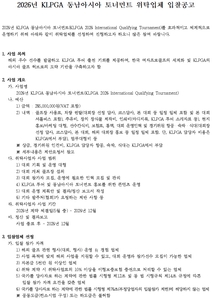 2026/04/KLPGA 동남아시아 토너먼트(2026 IQT) 위탁사업자 선정 입찰 제안요청서_1.hwp