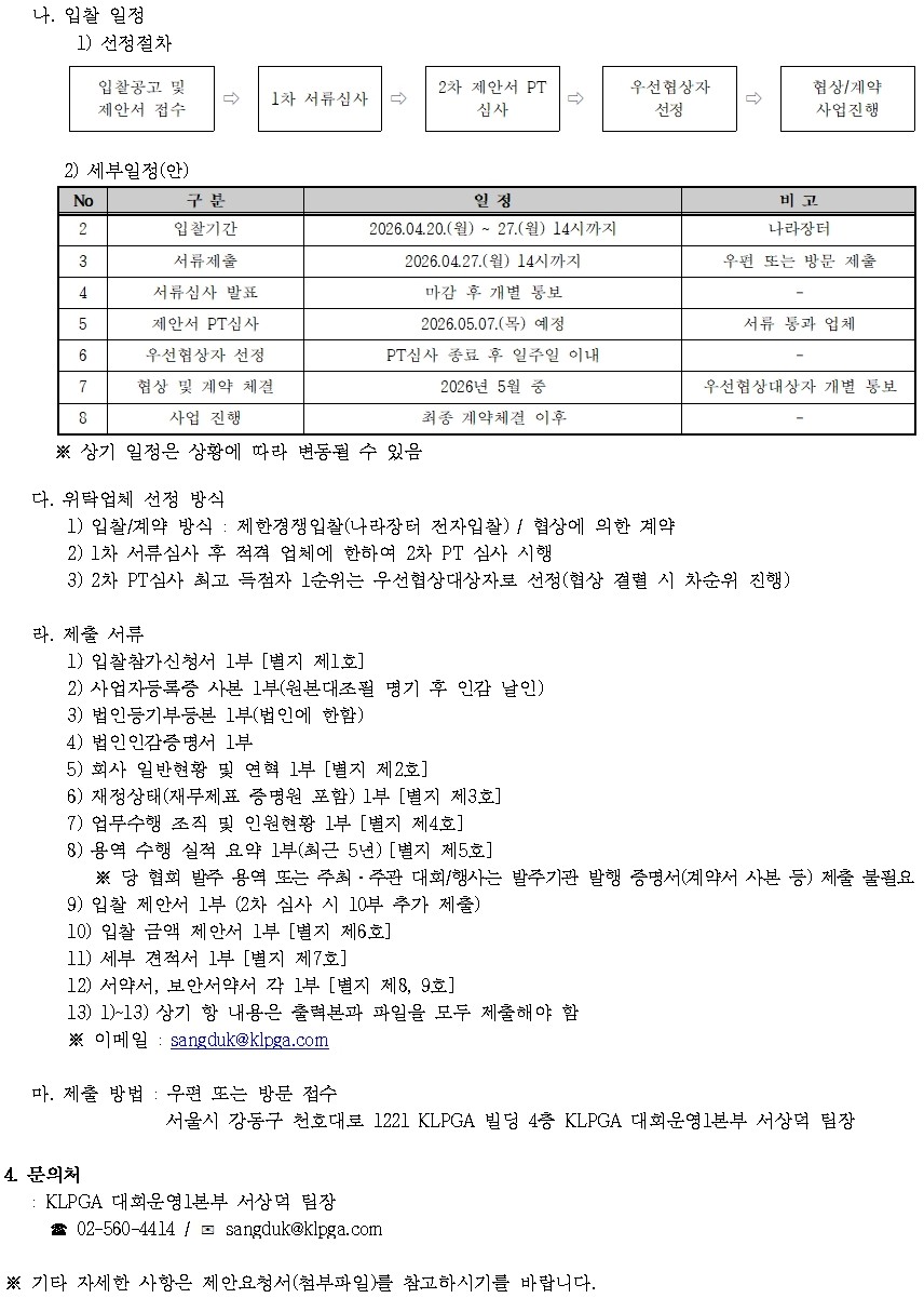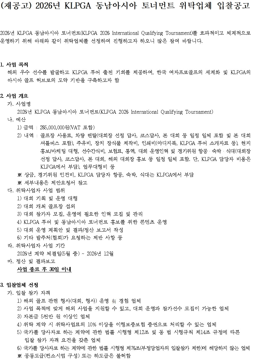 2026/04/(재공고) KLPGA 동남아시아 토너먼트(2026 IQT) 위탁사업자 선정 입찰 제안요청서.hwp