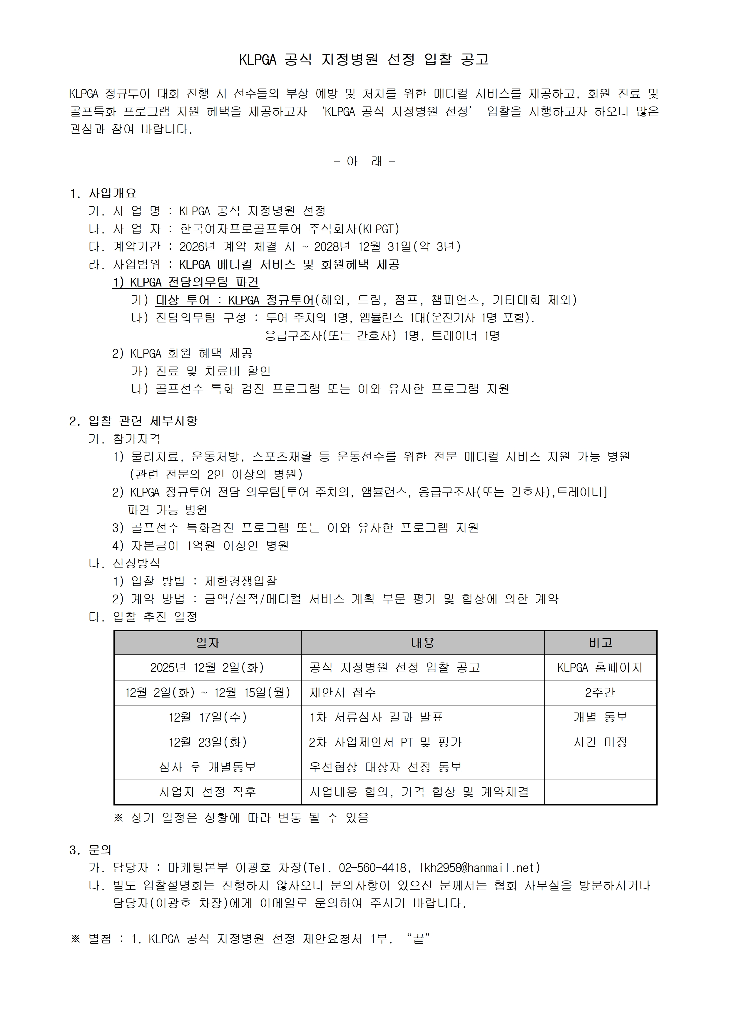 2025/12/2026-2028 KLPGT 공식 지정병원 선정 제안요청서_5.hwp